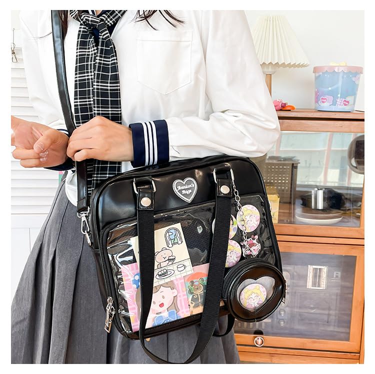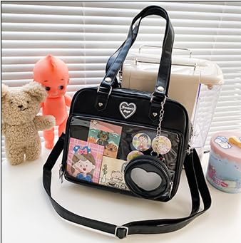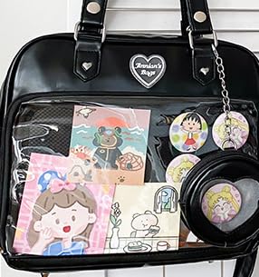 • DIY Pins Display Window Bag Purse Design: Perfect for display your style, with your imagination and your favorite anime merch, you can make a unique and personality ita bag for your own. Put some pins, key chains or photo in the clear area without the risk of losing them.