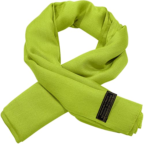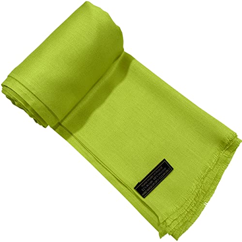 CJ Apparel Lime Green Solid Color Fringe Design Nepalese Shawl Seconds Scarf Wrap Stole Throw Head Wrap Pashmina Hand Made in Nepal New 1