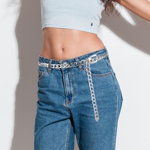 Silver Chain Belt for Women Western Chunky Waist Chain Belts Plus Size Metal Waist Belts Adjustable Thin Womens Belt Fashion Boho Belly Belt Chains Accessories for Women Girls Dresses Jeans Clothes 5