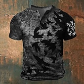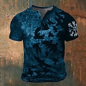 More information about Men's Graphic Animal Viking T shirt Henley Shirt Short Sleeve 3D Print Fashion Retro Vintage Classic Sports Outdoor Holiday Going out Spring & Summer Blue Brown Green Gray Henley Henley T-Shirt
