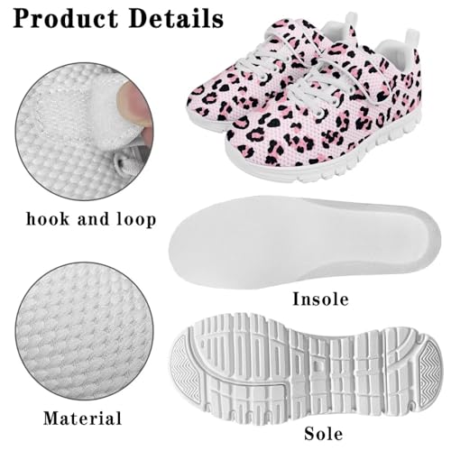 Kids Shoes, Boys Girls Sneakers Lightweight Athletic Walking/Running Tennis Shoes(Little Kid/Big Kid) Pink Leopard Pattern(White Sole) 3