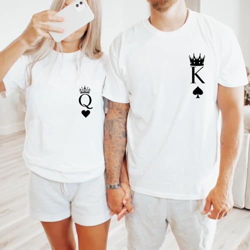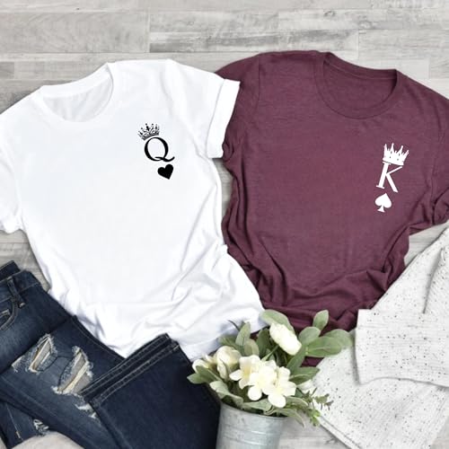 • MATCHING SET: Coordinated King and Queen playing card design t-shirts perfect for couples, featuring crown symbols and card suit emblems