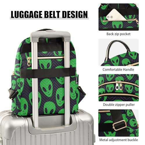 Women Fashion Backpack Green Aliens Face Sturdy Daily Bag Compact Regular Bag Diaper Bag 6