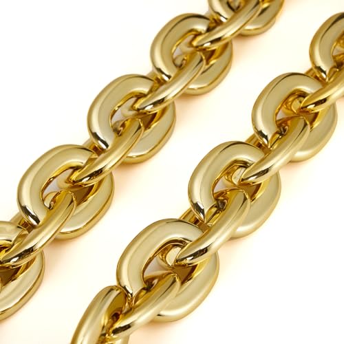Passed colorfast test,Large Fake Plastic Chain, Hip-hop Rapper Big Chunky Fake Gold Chain, Super long Detachable, Non-fading Party Clothing Plastic Jewelry Necklace Decoration, Women and Men. 1