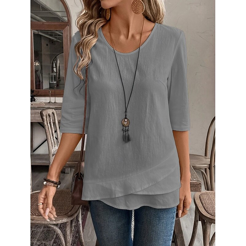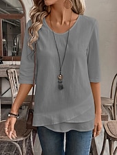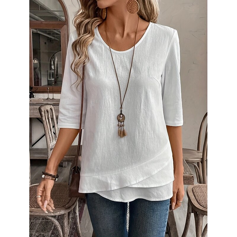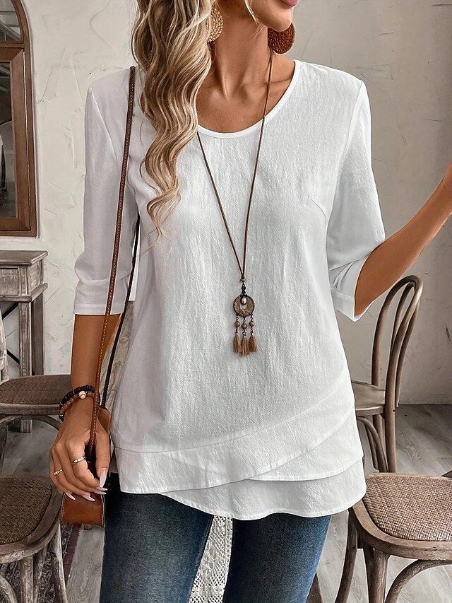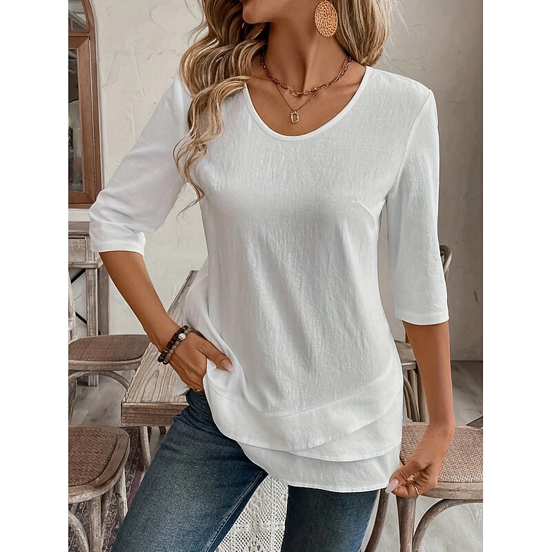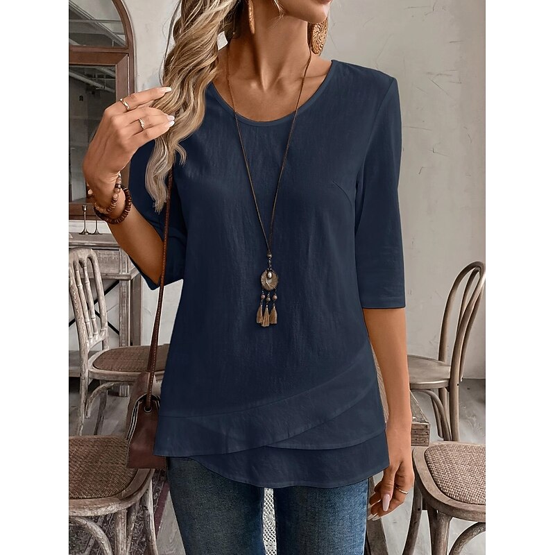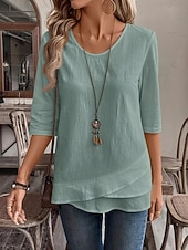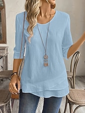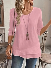 More information about Women's Blouse Solid Color Vintage Tropical Stylish Half Sleeve Crew Neck Square Neck Scoop Neck Regular Tops Daily Ruffle White Pink Navy Blue Blue Green Spring Fall Winter