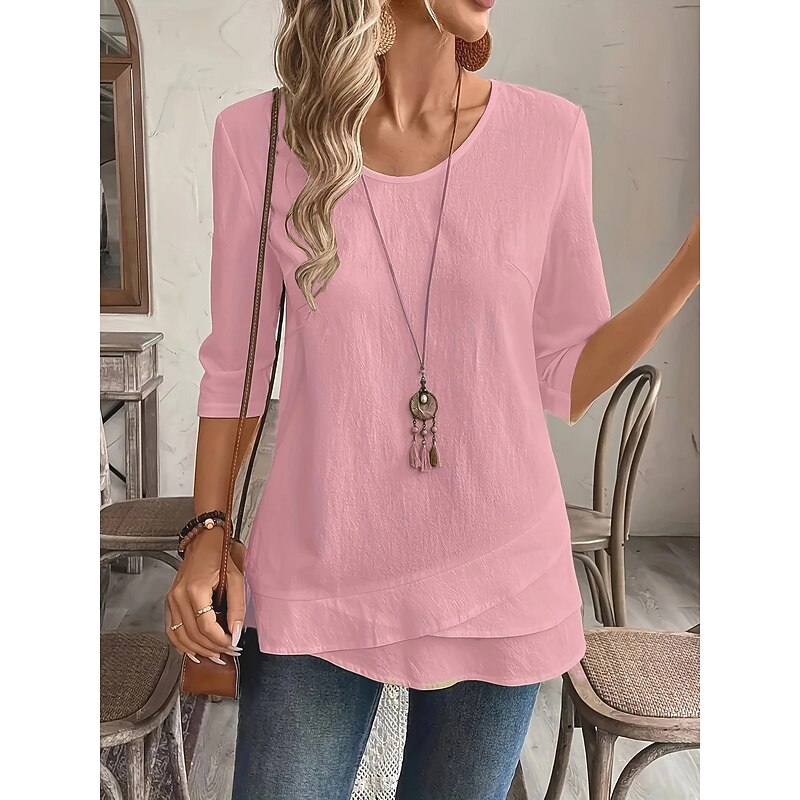 HOT ! Women's Blouse Solid Color Vintage Tropical Stylish Half Sleeve Crew Neck Square Neck Scoop Neck Regular Tops Daily Ruffle White Pink Navy Blue Blue Green Spring Fall Winter