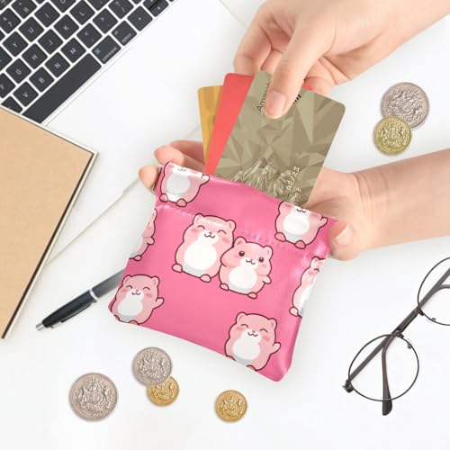 Cartoon Hamster Pink Coin Purse Leather Pouch Change Purse, Squeeze Coin Pouch for Cards, Keys & Lipsticks, Unisex 4