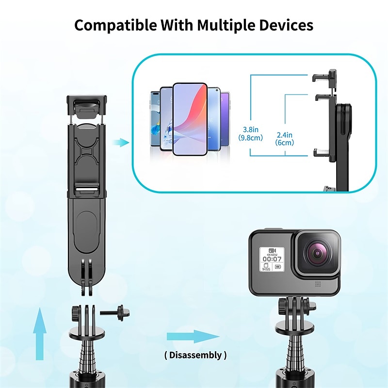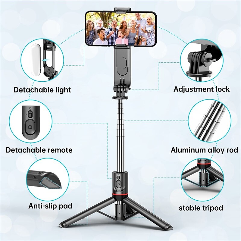 - Remote Shutter: The phone tripod comes with a built-in wireless remote control, enabling shooting within a range of 10 meters. It is compatible wi