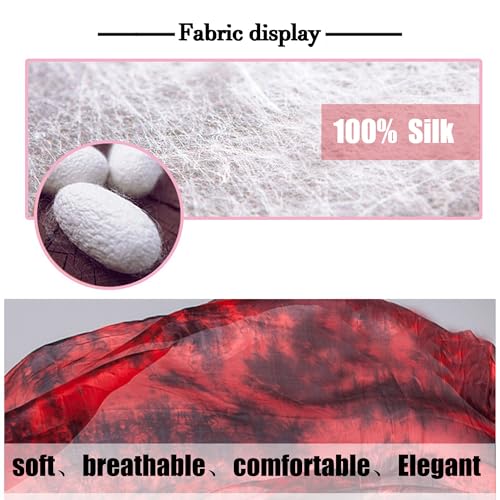 Aumulen Women Colorful Professional Belly Dance Silk Veils Hand Made Tie Dyed Scarf (Black red tie dyed) 6
