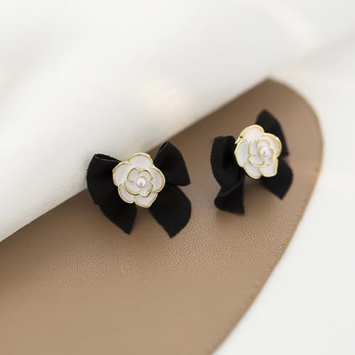 Kokoma Camellia Bow Knot Earrings for Women Girls Elegant Bow Ribbon Butterfly Knot Stud Earrings Wedding Statement Flower Dainty Ear Jewelry 6