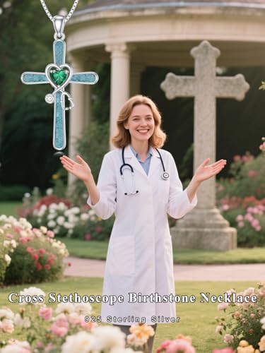 HOT ! Stethoscope Cross Necklace 925 Sterling Silver Turquoise Doctor Nurse Pendant RN Registered Graduation Nurse Jewelry for Women Medical Student
