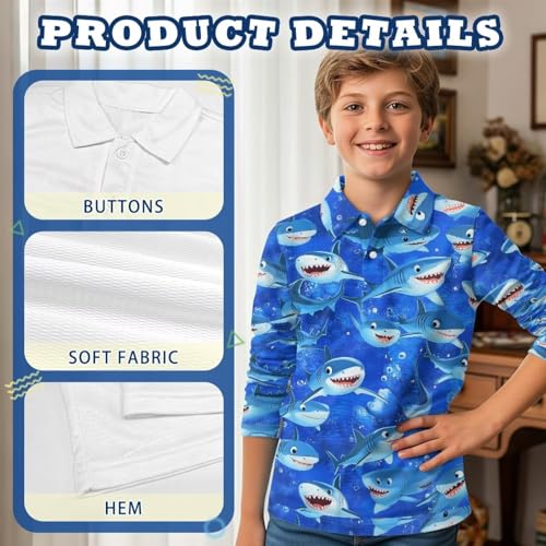 • BOYS GOLF SHIRTS LONG SLEEVE: V neck boys’ golf shirt with collar and button that blends style and function. Perfect for golf games, sports workouts, school uniforms, or casual wear, tennis, athletic. they combine cool patterns that kids love