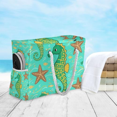 OTVEE Green Seahorses Pattern Beach Bags for Women Ladies Large Canvas Tote Shoulder Bag Waterproof Travel Bags for Gym Swim Pool Camping 5