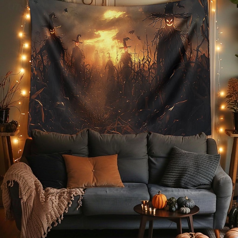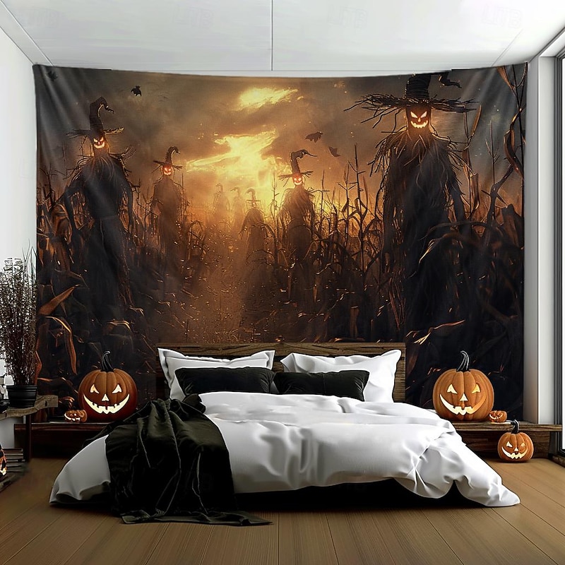 HOT ! Scarecrows Pumpkin Hanging Tapestry Wall Art Large Tapestry Mural Decor Photograph Backdrop Blanket Curtain Home Bedroom Living Room