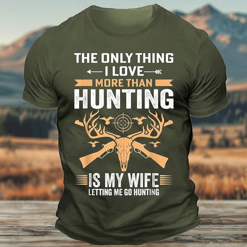 HOT ! Men's Funny Hunting Deer T Shirt Tee Top 100% Cotton Short Sleeve Graphic Shirt Black Army Green Dark Blue Comfortable Tee Street Sports Outdoor Fashion Designer Clothing