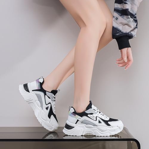 YAXE Women's Fashion Chunky Sneakers Breathable Comfortable Casual Platform Walking Shoes 5