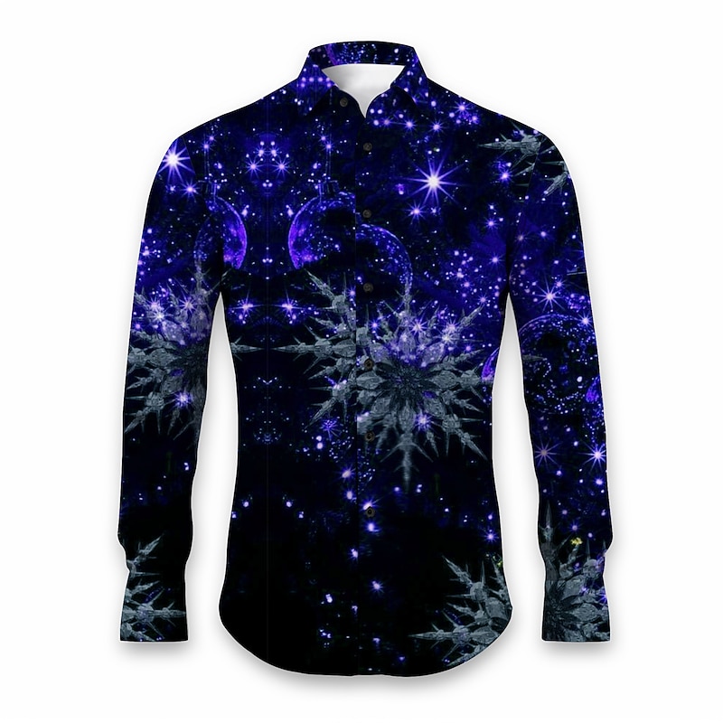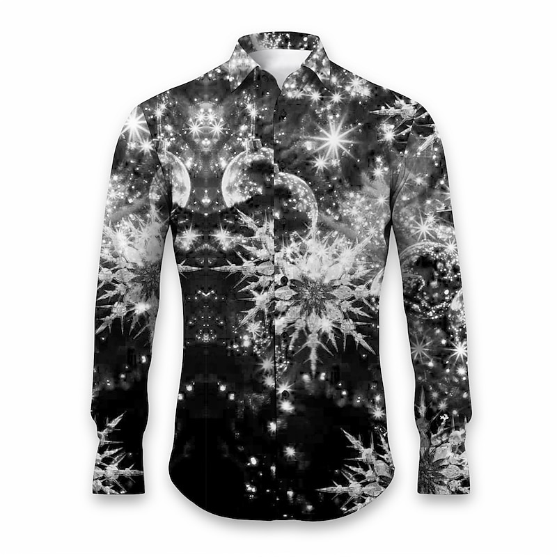 Highlights - This product features a long sleeve design for added warmth and comfort. - Specifically designed for men, ensuring the perfect fit and style. - The sparkly pattern adds a trendy and eye-catching element to the product. - The printed design adds a unique and stylish touch to the overall look. - The turndown neckline enhances the sophistication and elegance of the garment.