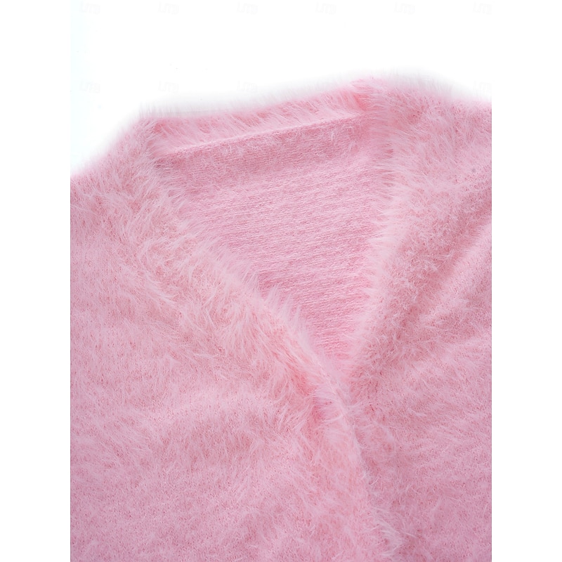 Women's  Oversized Cardigan Fuzzy V Neck Knit Fall Winter Work Weekend Elegant Fashion Streetwear Long Sleeve Solid Color Pink Light Grey 13