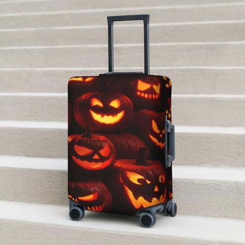 HOT ! Halloween Pumpkins Glowing In The Dark Elastic Travel Luggage Covers Dustproof Scratch-Resistant Suitcase Protector Fit 22-24 Inch