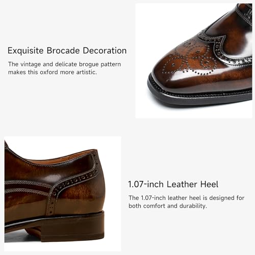 BEAU TODAY Oxfords Dress Shoes for Men Genuine Leather Brogue Oxford Shoes Lace Up Wedding Dress Shoes Mens Formal Business Mens Wingtip Shoes 4