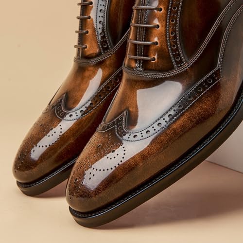 BEAU TODAY Oxfords Dress Shoes for Men Genuine Leather Brogue Oxford Shoes Lace Up Wedding Dress Shoes Mens Formal Business Mens Wingtip Shoes 5