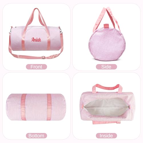HOT ! Personalized Kids Travel Duffle Bag with Custom Name‌ - Lightweight Seersucker Weekender for Toddlers Boys & Girls, Monogrammed Gym Ballet Sleepover Bag, Unique Birthday Gifts (Pink)