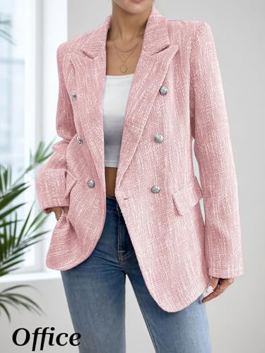Mina Self 2025 Fall Women's Tweed Blazer - Double-Breasted Fully-Lined Fashion Slim Casual Work Office Jacket with Pockets 7