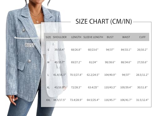 More information about Mina Self 2025 Fall Women's Tweed Blazer - Double-Breasted Fully-Lined Fashion Slim Casual Work Office Jacket with Pockets