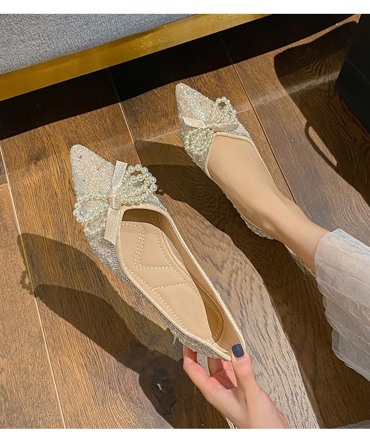 Women's Pearl Flats Glitter Elegant Ballet Flats Lightweight Wedding Bride Dressy Flats 4