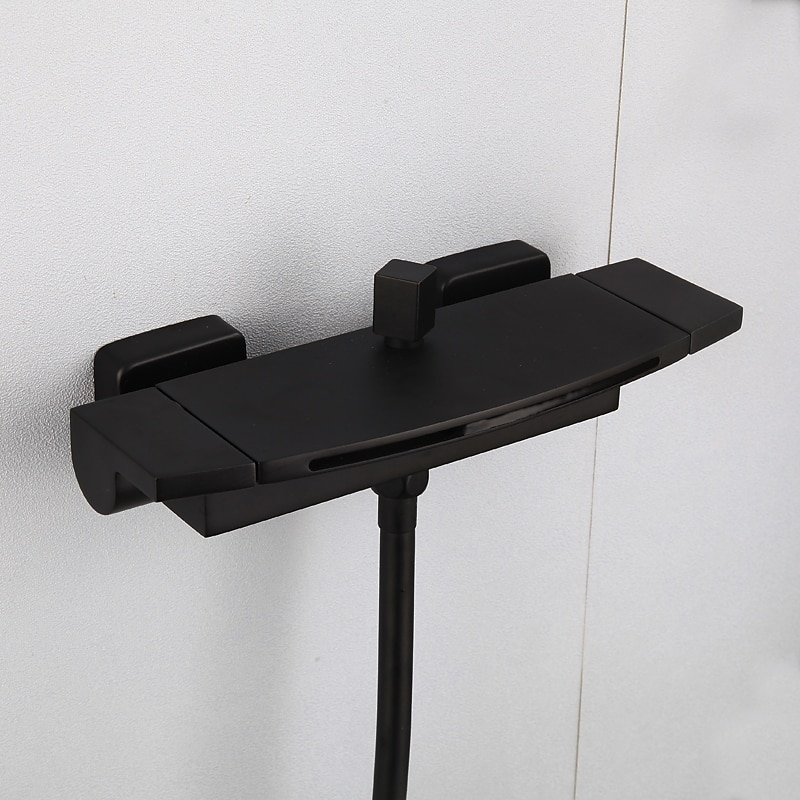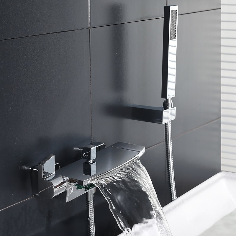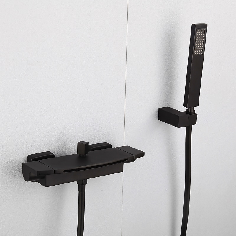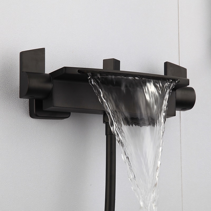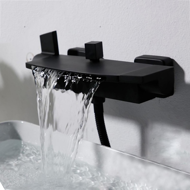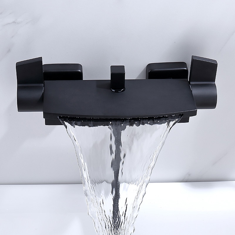 HOT ! Waterfall Bathtub Faucet Wall Mounted, Widespread Bathroom Shower Mixer Faucet Bath Roman Tub Filler Mixer Tap Brass, 3 Hole Sprayer with Cold Hot Water Hose