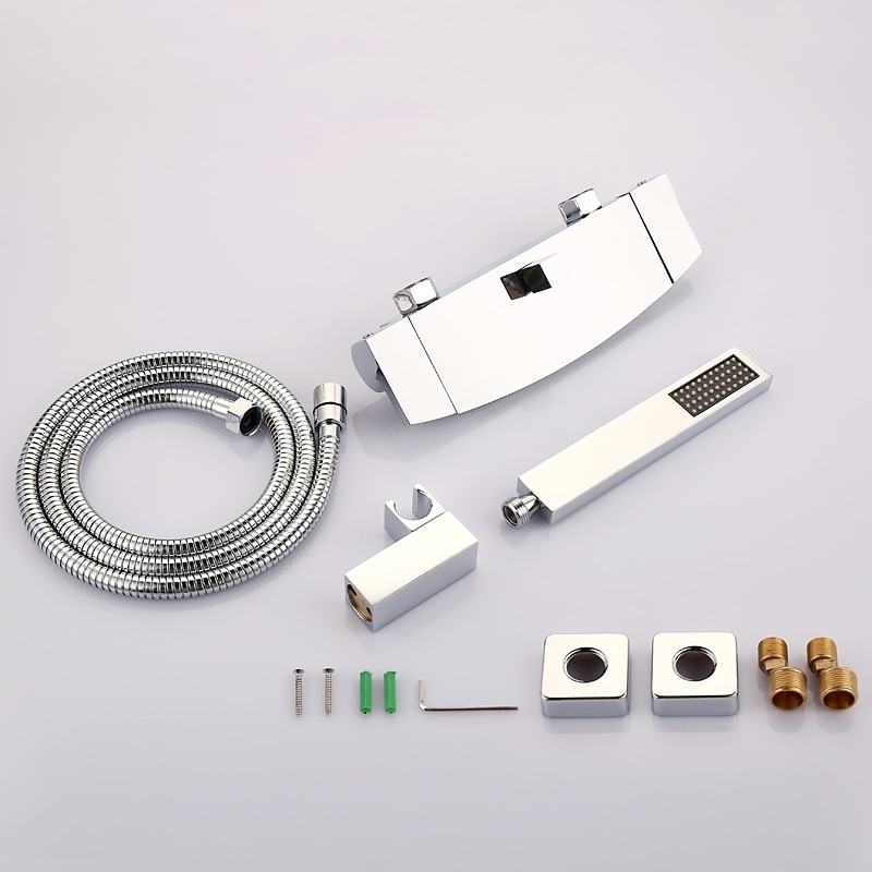 Highlights Premium Material : Heavy duty solid brass construction faucet body, massive material for longevity and durable. Quality ceramic cartridge for drip-free performance. Waterfall Spout : Designed with waterfall spout for better water flow, brass material and chrome finished for durability and reliability. Multifunctional : Brass hand shower, perfect for full body shower or cleaning the tub. Easy Operation : Single handles can adjust the water temperature easily; Pull up the diverter handle back on the waterfall spout to switch water from waterfall spout to hand shower. Easy to Install : The bath tub faucet with complete accessories complements the bath. Note: Dear buyer, if the parcel is found to be badly damaged, please take a photo, reject it and contact us for resolution. Because of the size measurements are handmade, so there may be 1-3CM error. Please understand because of the light irradiation or computer display difference, so I can't guarantee photos and real color is 100% the same.