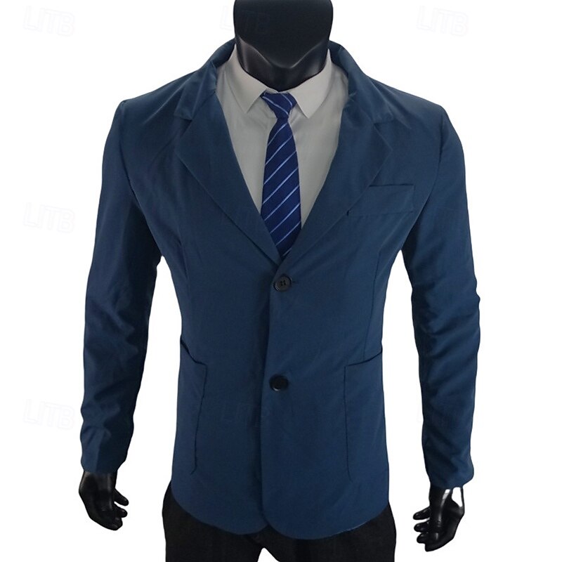 Men's Blazer Business Cocktail Party Wedding Party Fashion Casual Spring Fall Polyester Plain Pocket Buttons Comfortable Single Breasted Blazer Black Red Blue Purple 15