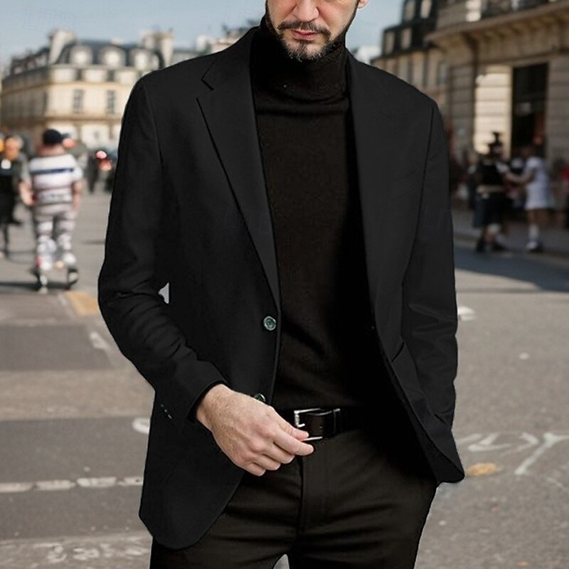 Men's Blazer Business Cocktail Party Wedding Party Fashion Casual Spring Fall Polyester Plain Pocket Buttons Comfortable Single Breasted Blazer Black Red Blue Purple 11