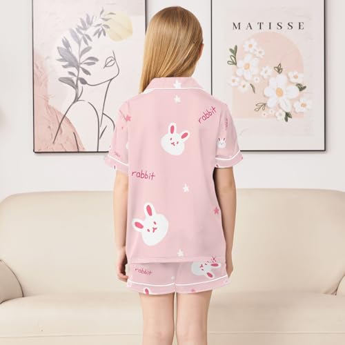 senya Rabbit Cute Head Satin Summer Pajama Sets Silk Short Sleeve Button Down Sleepwear 4