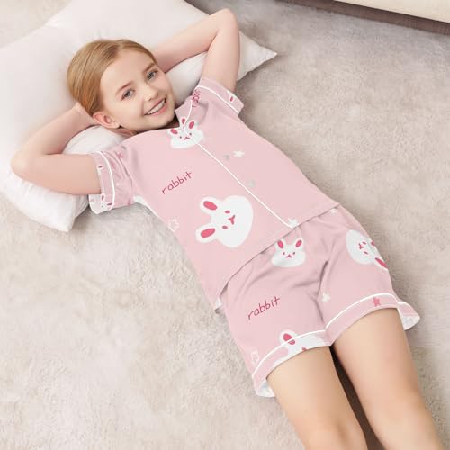senya Rabbit Cute Head Satin Summer Pajama Sets Silk Short Sleeve Button Down Sleepwear 1