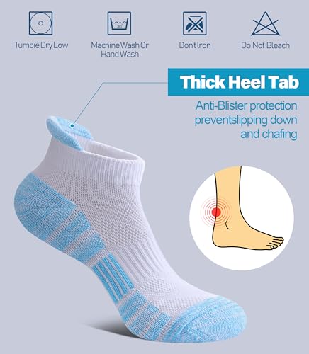 • Women Anti-blister Socks: Heel tab is one of important features as sports socks, which protects your achilles tendon and add a layer of comfort to your feel while workout, prevents slipping off, the padding across the achilles tendon, prevents blisters on the ankle and heel. Elastic cuff can lock the ankle and promise socks non-slip also support for your feet