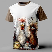 Highlights [Fabric] : Crafted from a blend of soft and breathable polyester, this T-shirt ensures a comfortable and durable wear, ideal for spring and summer. The fabric is stretchy, allowing for flexibility and ease of movement. [Fit] : This T-shirt boasts a tailored fit with a classic crew neck design and short sleeves, providing a relaxed yet contemporary appearance suitable for everyday wear. The tailored fit highlights the wearer's physique while maintaining comfort. [Design Highlights] : The T-shirt features a vibrant and playful 3D print of whimsical chickens, sure to catch the eye and add a touch of humor to any outfit. Its retro vintage style is further accentuated by the contrasting bold red sleeves and neckline against a white base, offering a quirky and fun aesthetic. [Occasions] : Perfect for casual street outings, weekend gatherings, or a fun night out at the bar, this T-shirt is designed for those who love expressing their personality in a light-hearted way. It's an ideal choice for adding some charm and amusement to any laid-back occasion. [Size Range] : Available in a wide range of sizes from S to XXXL, this T-shirt caters to various body types, ensuring an inclusive fit for all who are young at heart and enjoy a distinctive sense of style. Perfect for everyday use. superior materials and excellent craftsmanship ensure long-lasting durability.