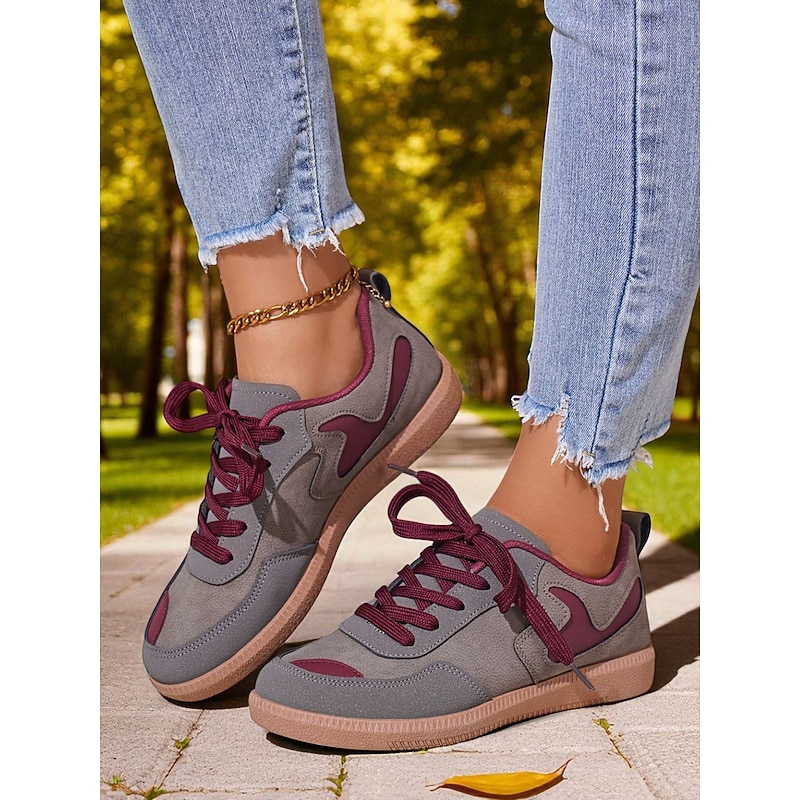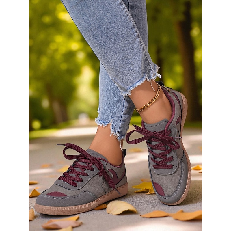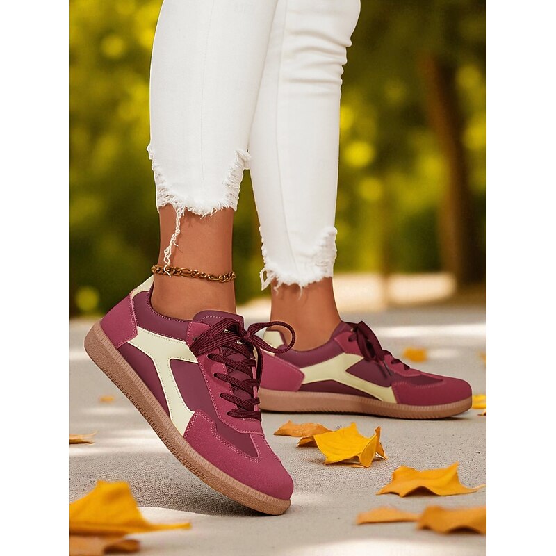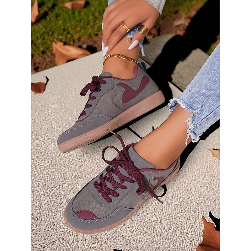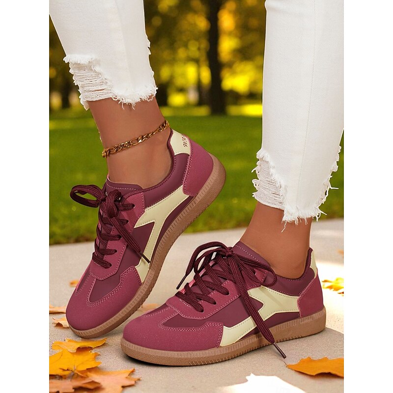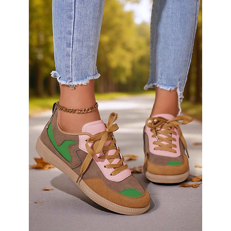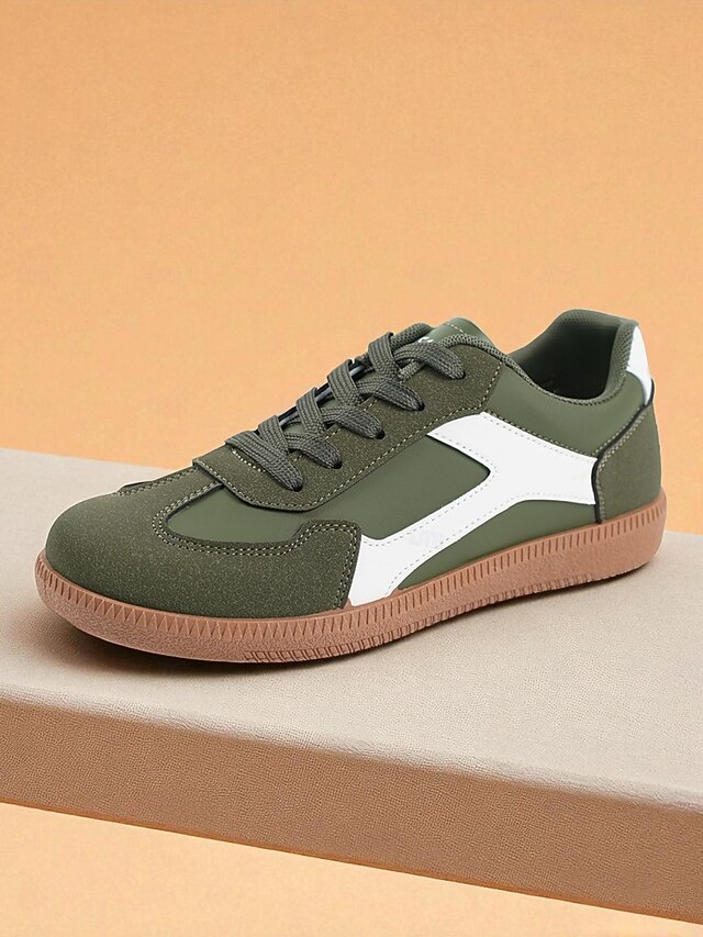 HOT ! Women's Green Lace-Up Sneakers – Retro-Inspired Casual Trainers with White Contrast Detail for Walking, School and Daily Errands