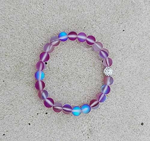 HOT ! HOPE INSPIRED Mystic Mermaid Glass Bracelet with 8 mm Purple Glowing Moonstone Beads