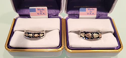 HOT ! Sterling Silver, 12k Rose and Green Gold Black Diamond-Cut Black Hills Gold Wedding Band, His and Hers Wedding Ring Set
