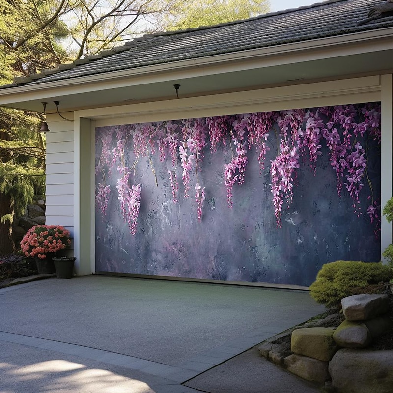 Why Choose Wisteria Flower Painting Outdoor Garage Door Cover Banner stunning Large Backdrop Decoration for Outdoor Garage Door Home Wall Decorations Event Party Parade?