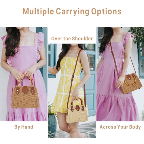 Straw Beach Bag Crossbody Handbag for Women Handmade Woven Shoulder Bag Top Handle Purse for Summer 6