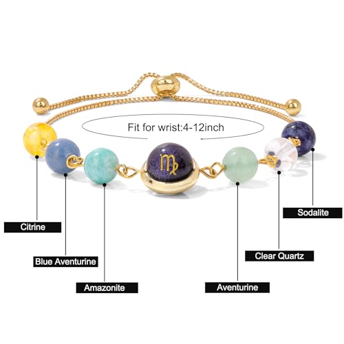 • 【Virgo Gifts】Each of the 12 zodiac signs have its own associated stones, which can be used to strengthen positive traits and balance negative ones.We carefully selected Sodalite, Clear Quartz, Aventurine, Amazonite, Blue Aventurine and Citrine for the Virgo bracelet.