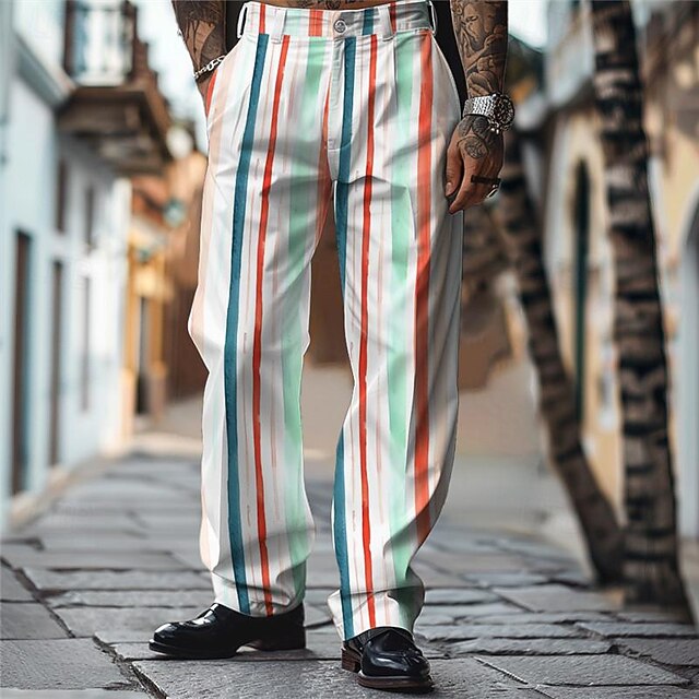 More information about Colorful Holiday X Designer Kris Men's Stripe Printed Dress Pants Pants Waist Elasticity Trousers