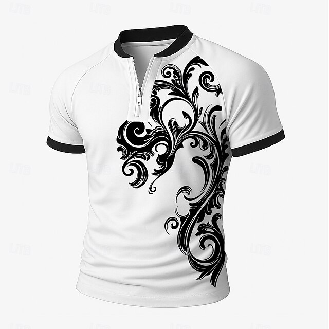 Men's Floral Zip Polo Short Sleeve Stand Collar Business Modern Leisure Sports & Outdoor Athleisure Casual Daily Zipper 3D Print Summer Violet Robin's Egg Blue Black 7