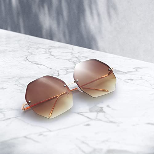 The Fresh Fashion Designer Huge Hexagon Metal frame Ocean Colored Lens Sunglasses - Exquisite Packaging 7