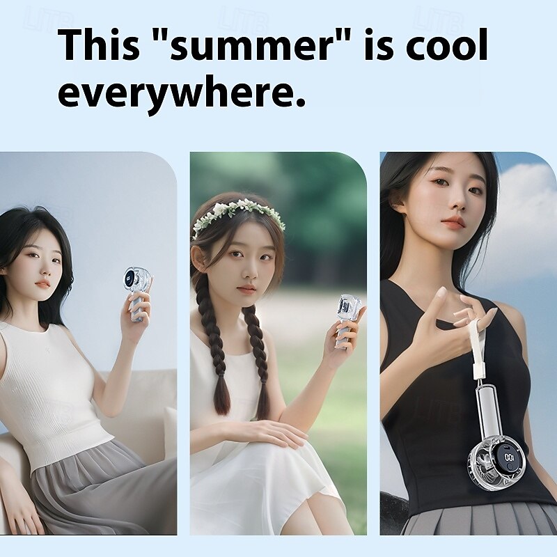 Compact Mini Fan with LED Screen and Torch – USB Rechargeable 5-Speed Fan for Indoor Outdoor Travel 14