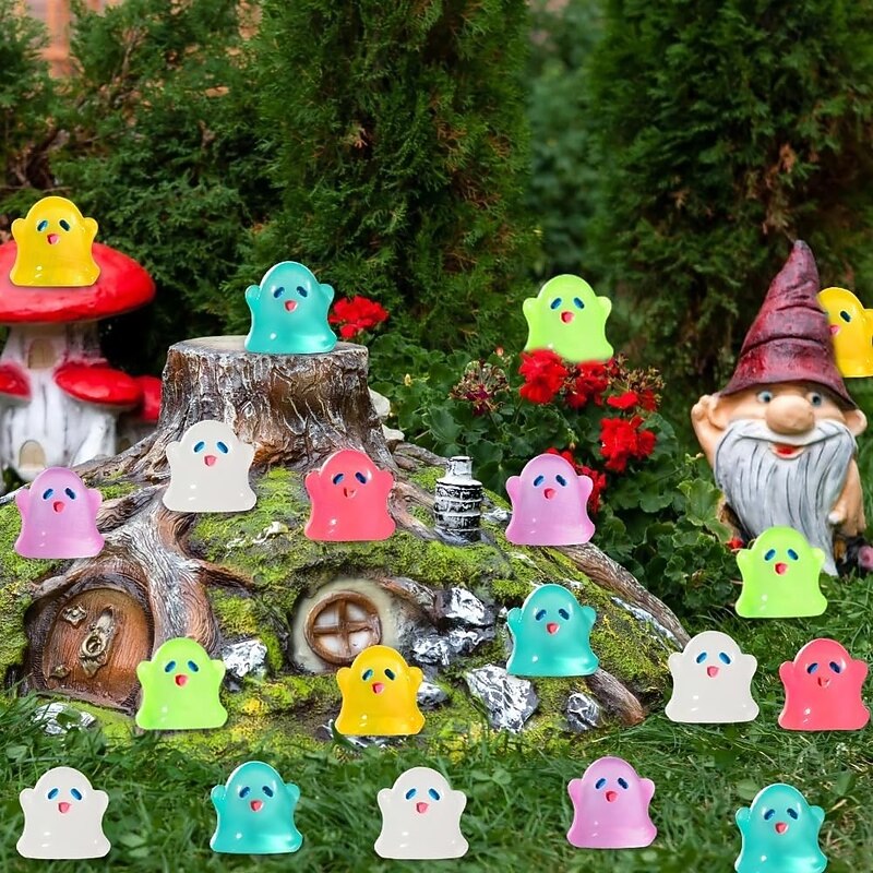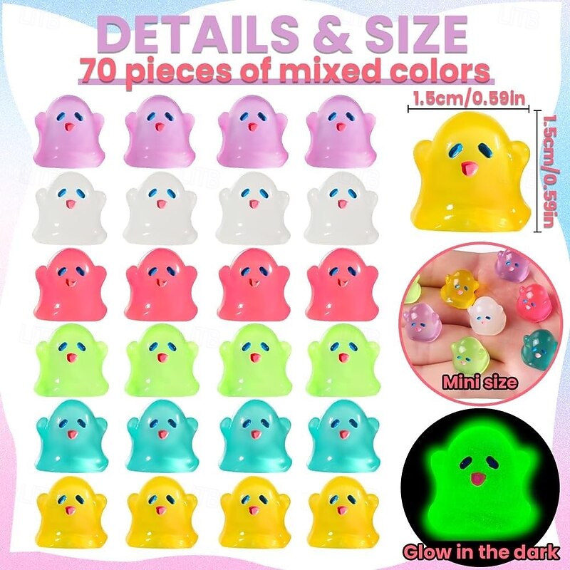 70 pcs Halloween Mini Resin Cute Ghost Decoration Statues Night Light Cute Miniature Cute Ghost Decoration Statues Halloween Miniature Landscape Accessories 1