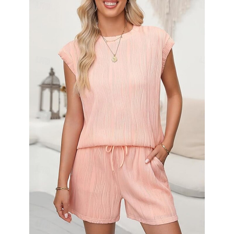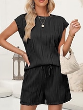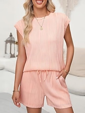 More information about Women's Pajama Set Casual Comfort Pure Color Pocket Elastic Waist T Shirt Shorts Home Daily Short Sleeve Crew Neck Black White Pink Summer Spring Fall Regular Fit