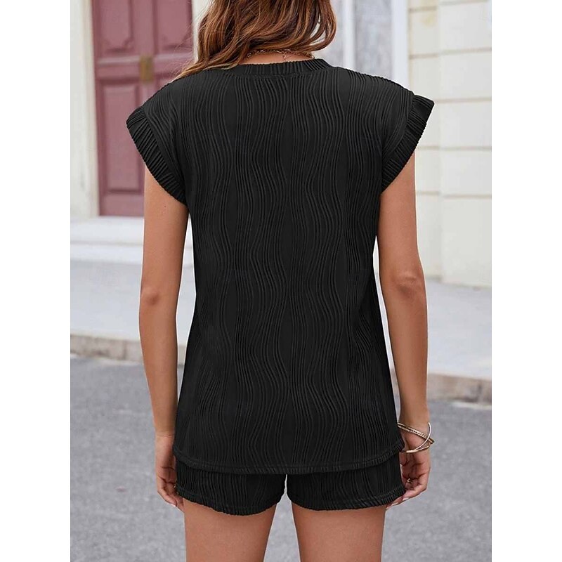 HOT ! Women's Pajama Set Casual Comfort Pure Color Pocket Elastic Waist T Shirt Shorts Home Daily Short Sleeve Crew Neck Black White Pink Summer Spring Fall Regular Fit